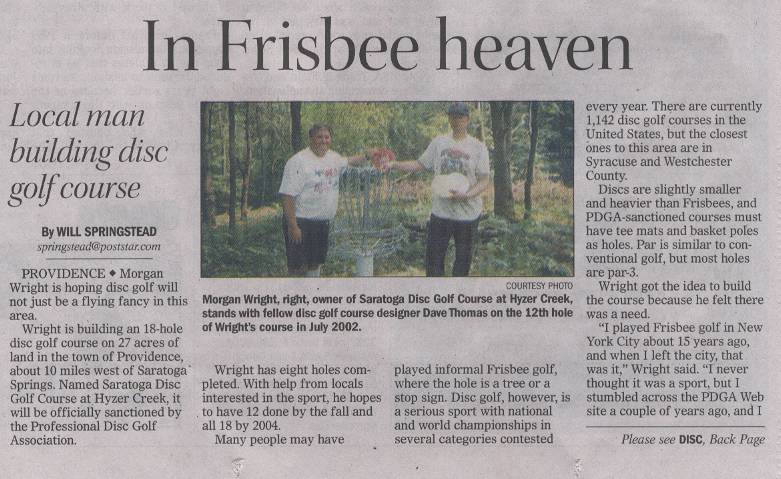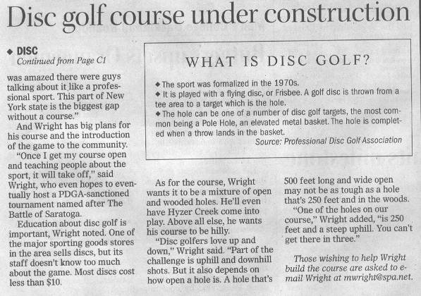 Glens Falls (NY) Post Star, Jan. 30, 2003. The photo was taken at hole 9, which was called hole 12 in 2002.